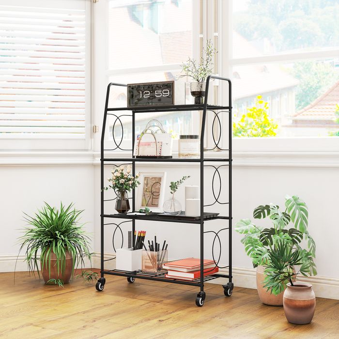 Nutzen Sie Ihren Raum optimal mit dem Pflanzenständer mit 4 Ebenen. Mit vier grosszügigen Regalböden (63,5 x 29 cm) schaffen Sie Platz für mehr Pflanzen auf kleinem Raum – perfekt für Balkone, Terrassen oder Innenräume. Bewegliche PU-Rollen mit Bremsen und handliche Griffe des Pflanzenregals ermöglichen leichtes Verschieben, während rostfreier Metall langlebig und pflegeleicht ist. Vielseitig für Pflanzen, Bücher oder Deko-Elemente.