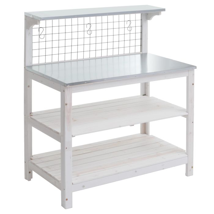 Pflanztisch HWC-N55, Gärtnertisch Blumentisch Pflanzregal, Holz FSC®-zertifiziert verzinkte Platte, 117x102x56cm - weiss