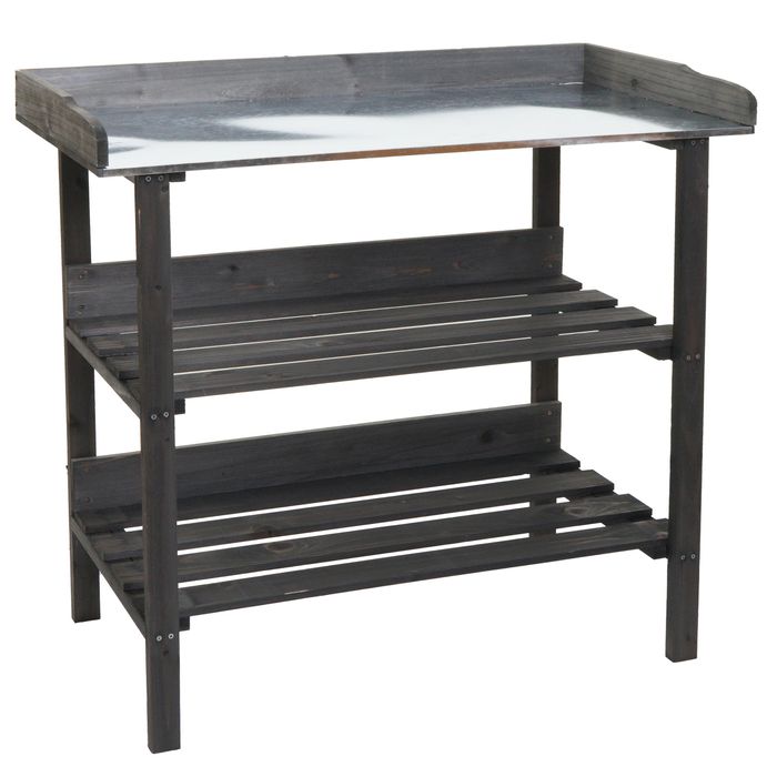 Pflanztisch HWC-O14, Gärtnertisch Blumentisch Pflanzregal, Outdoor Holz Tanne FSC®-zertifiziert, 86x92x41cm - anthrazit