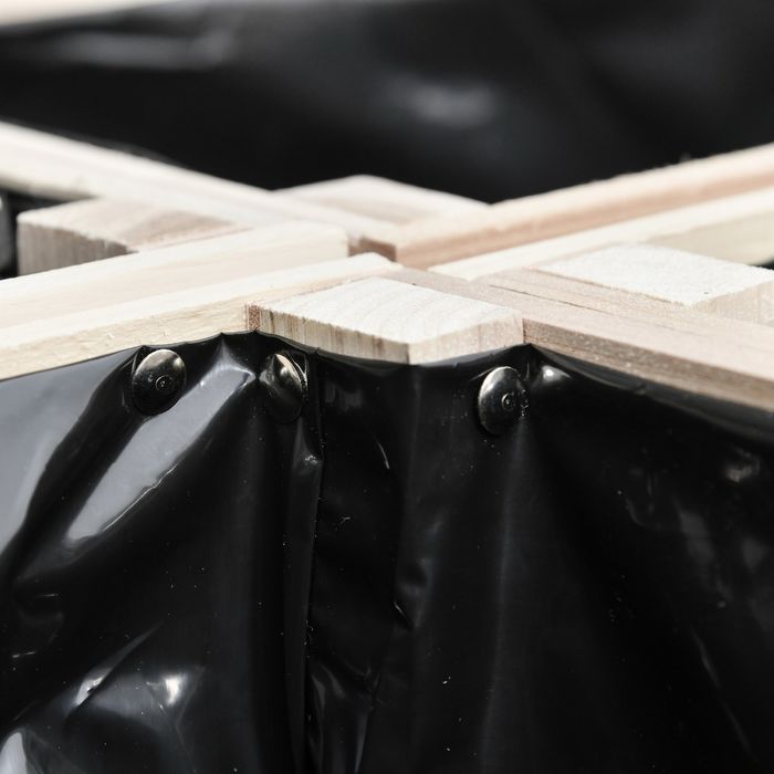 - Kunststoffauskleidung dichtet das Hochbeet ab und verhindert Bodenerosion