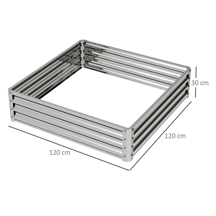 Gartenbeet, Pflanzkasten mit Stahlgehäuse, Silber, 120 x 120 x 30 cm