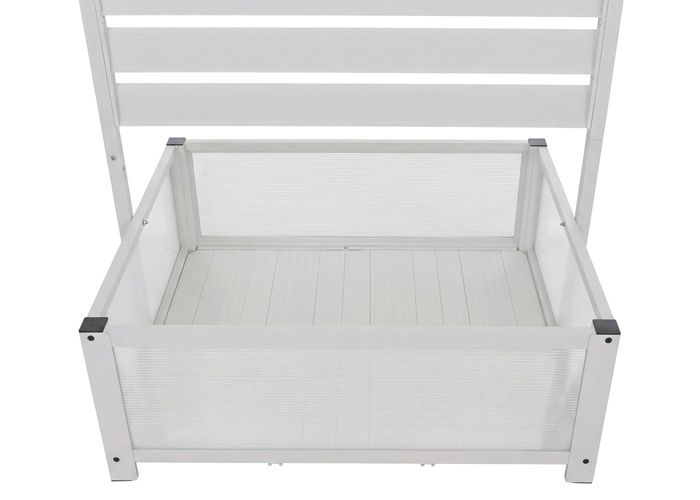- Das Beet mit Rankgitter kann auch als dekorativer Sichtschutz genutzt werden. So schaffen Sie im Handumdrehen mehr Privatsphäre auf Ihrem Balkon oder im Garten, ohne auf eine ansprechende Begrünung verzichten zu müssen.