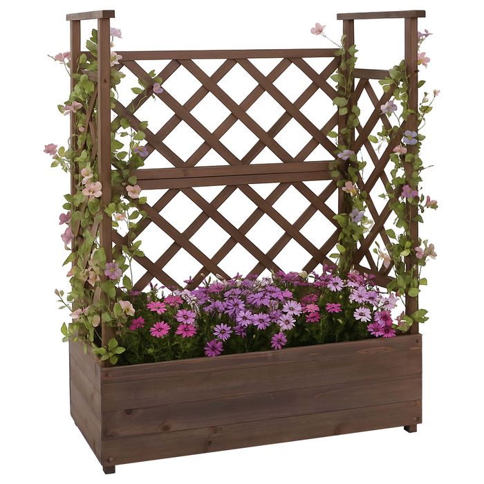 - Hochwertiger Pflanzkasten aus Tannenholz mit integriertem Rankgitter – ideal für Blumen, Kräuter und Kletterpflanzen. Schafft natürlichen Sichtschutz und sorgt für eine harmonische Atmosphäre auf Balkon, Terrasse oder im Garten.