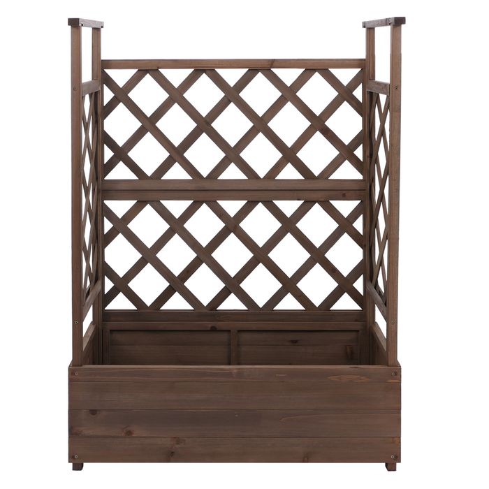 Hochbeet P67, Pflanz-/Blumenkasten Pflanzkübel Rankgitter Holz FSC® 114x85x44cm, braun