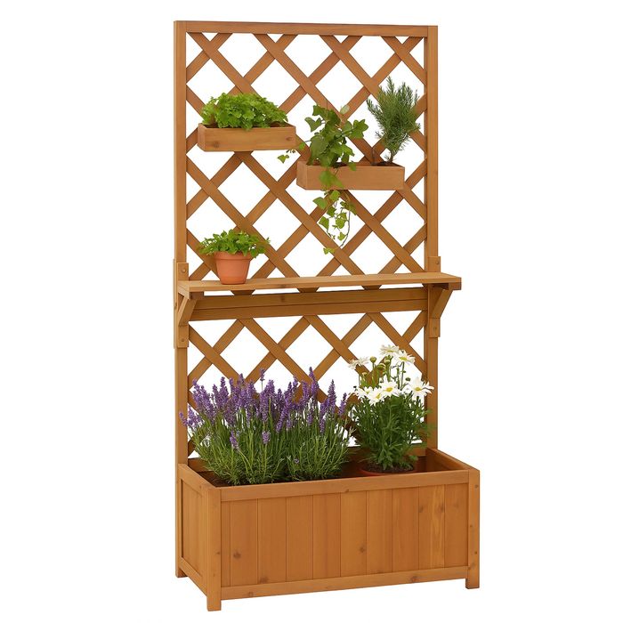 - Vielseitiger Pflanzkasten mit Spalier für Balkon, Terrasse oder Garten. Mit Ablagefläche, zwei abnehmbaren Holzkästen und stabilem Lattenboden für optimale Drainage - ideal für Blumen, Kräuter und Kletterpflanzen.