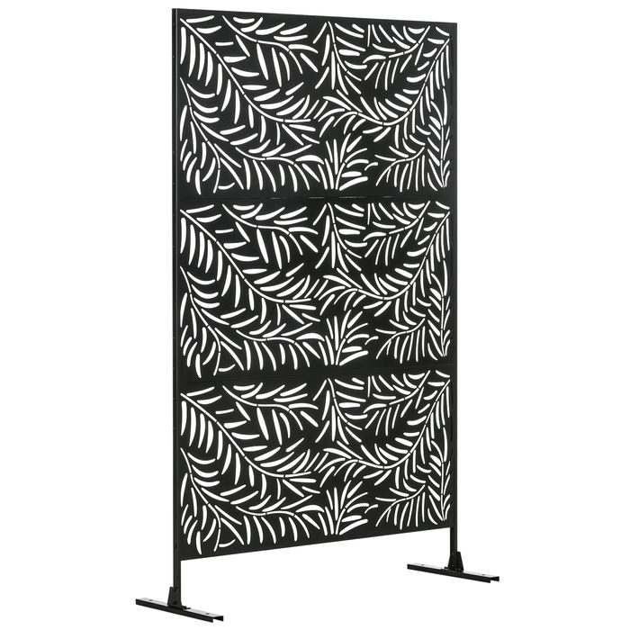 Sichtschutz mit Ständer, Raumteiler mit Weidenblattmuster, 122 x 198 cm Trennwand Raumtrenner für Garten, Terrasse, Stahl, Schwarz