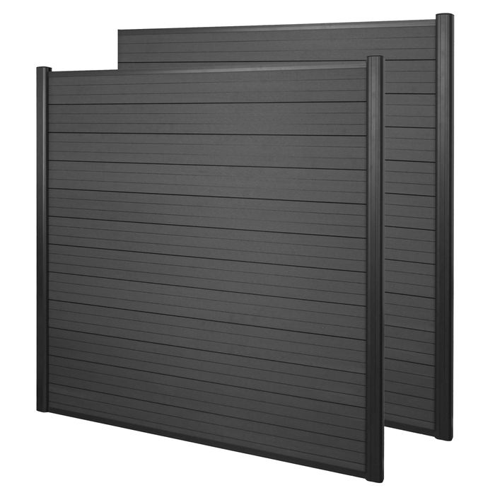 WPC-Sichtschutz Sarthe, Windschutz Zaun, Alu-Pfosten - 2er Set, 3,75m anthrazit