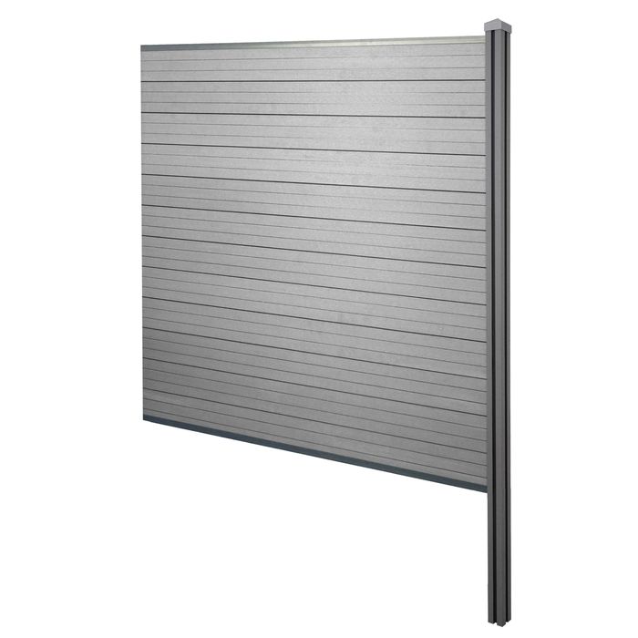 WPC-Sichtschutz Sarthe, Windschutz Zaun, WPC-Pfosten zum Einbetonieren - Erweiterungselement, 188cm grau