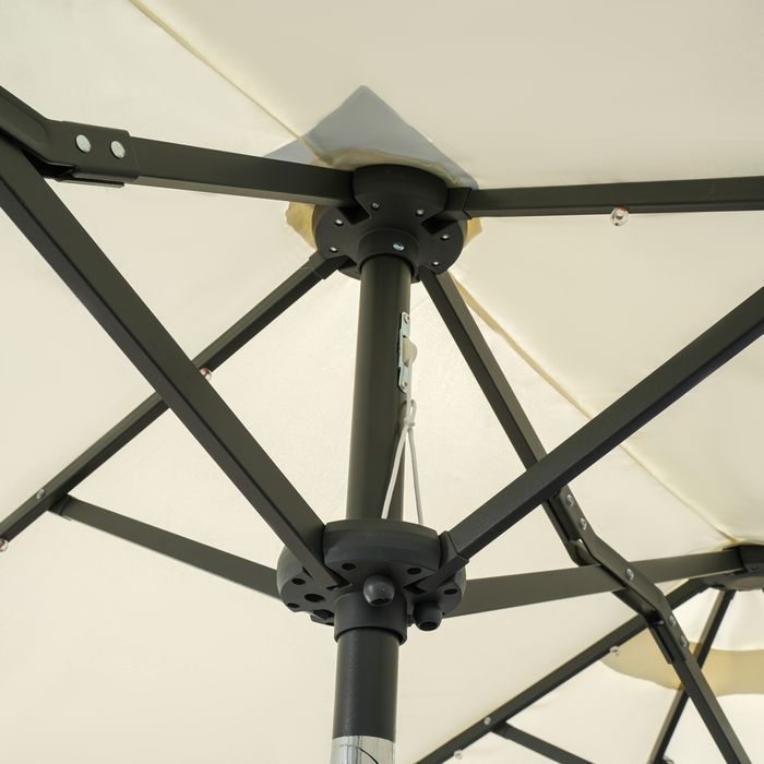 - Grosser Doppelschirm: Dieser raffinierte Sonnenschirm schützt sowohl Ihre Gäste als auch Ihre Möbel vor Sonne. Befestigen Sie ihn einfach mit einem passenden Schirmfuss oder mithilfe eines Terrassentisches mit einem Schirmloch. So können Sie es sich bequem machen und ohne Angst vor einem Sonnenbrand im Freien essen, mit Freunden plaudern oder ein Brettspiel spielen.