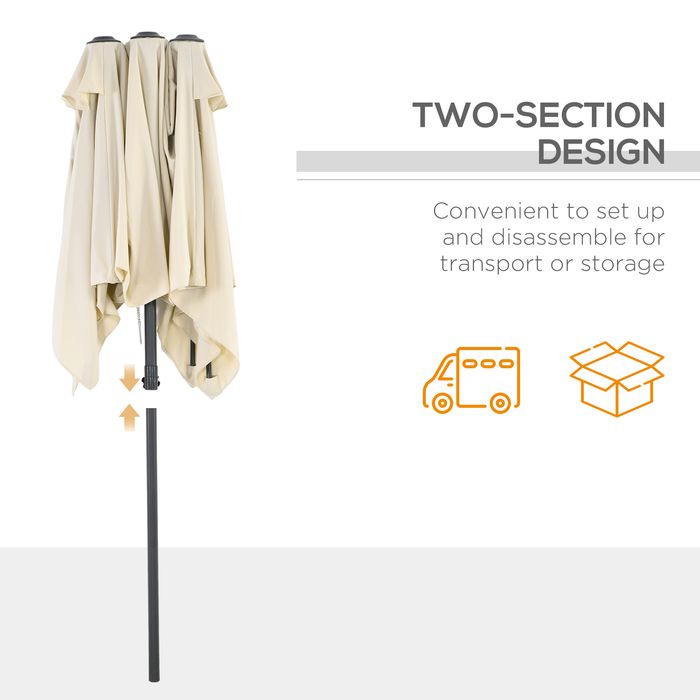 Doppelsonnenschirm neigbar, Polyester, Creme 150 x 295cm