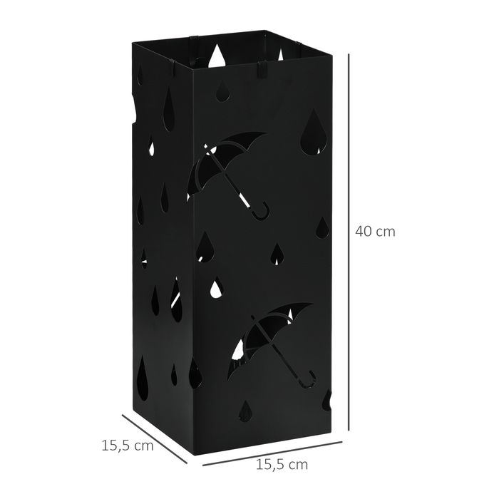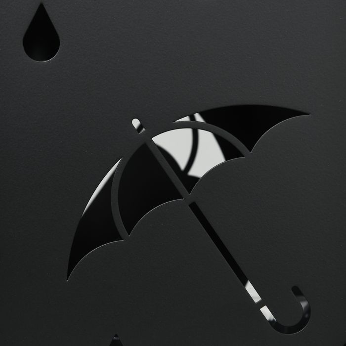 - Dekoratives Ausschnitt-Design: Mit Motiven von Regentropfen und Schirmen, passt dieser Schirmständer perfekt zu seiner Funktion.