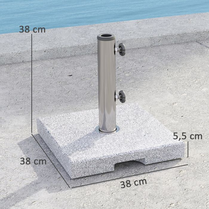 - Wetterfester Sonnenschirmständer aus Granit bietet ein Gewicht von 21 kg