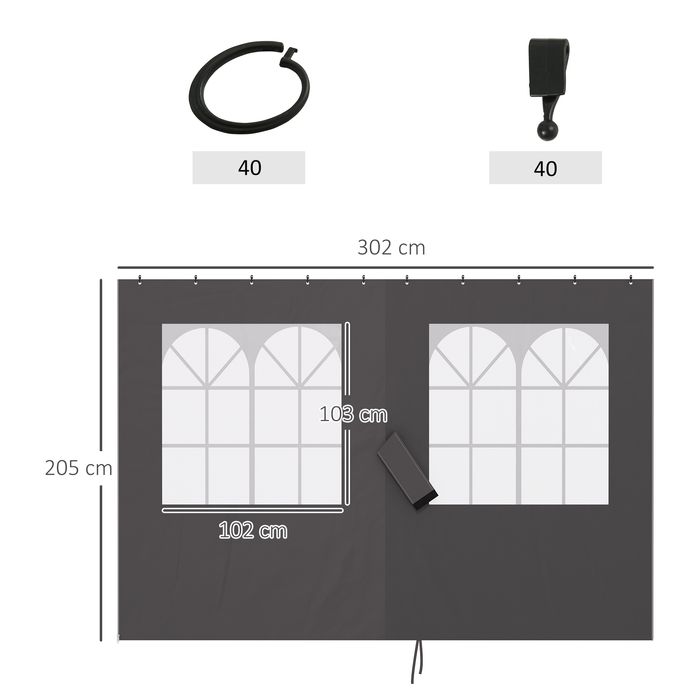 - Abmessungen der Pavillon-Seitenwand: 302Lx205H cm. Messen Sie vor dem Kauf die Grösse Ihres Pavillons, um die Kompatibilität unserer Produkte zu gewährleisten.