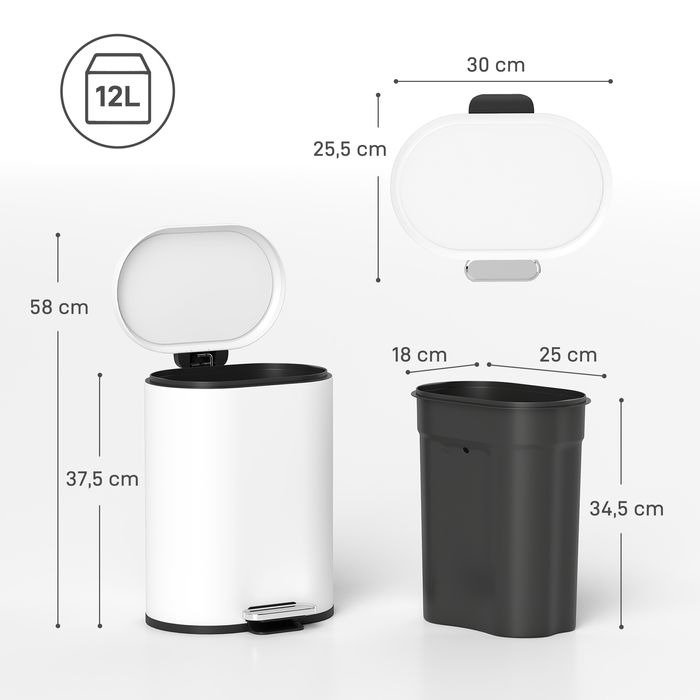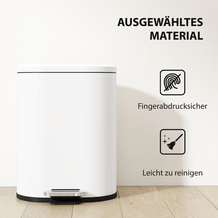 Mülleimer, 12L Treteimer, Soft-Close, 30x25,5x37,5cm, Weiss