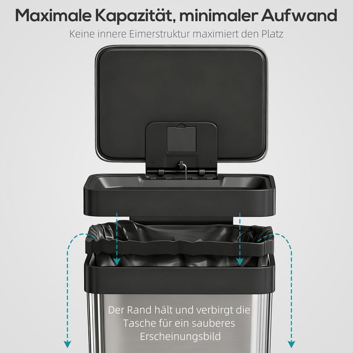 - Geräumiges 60 L Design: Dieser 60 L Tretmülleimer ohne inneren Eimer bietet maximalen Platz für grosse Müllbeutel, hält Ihre Küche oder Ihr Büro stets aufgeräumt und ermöglicht ein schnelles, einfaches und unkompliziertes Entleeren und Reinigen