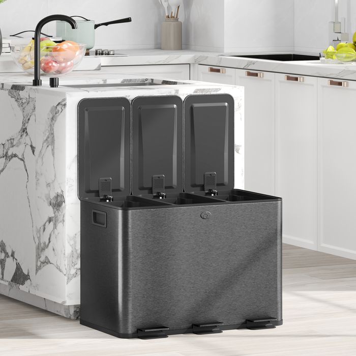 - ✔ Drei 20L-Fächer des Küchenmülleimers erleichtern das Recycling und die Mülltrennung