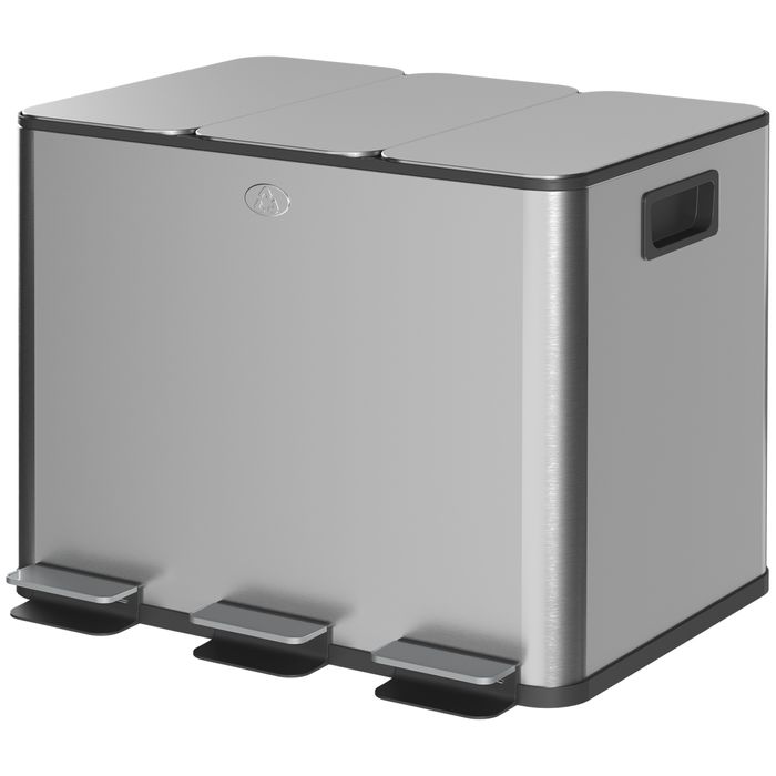 Halten Sie Ihre Küche stilvoll und geruchsfrei mit dem HOMCOM Mülleimer. Dieser dreifache Abfallbehälter bietet drei 20L Fächer und eingebaute Deodorant-Kassetten (Deodorants nicht enthalten), um Gerüche zu bekämpfen. Das elegante, fingerabdrucksichere Edelstahl-Design des Abfalleimers sorgt für einen makellosen Look. Die leisen, sanft schliessenden Deckel mit praktischen Pedalen und herausnehmbaren Treteimern machen die Entsorgung mühelos. Perfekt für jede belebte Küche!