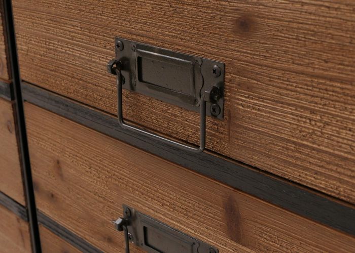 Für einen stabilen Stand sorgt das robuste Gestell aus Eisen, das nicht nur für Langlebigkeit steht, sondern auch die industrielle Note des Designs unterstreicht. Dank der höhenverstellbaren Fussbodenschoner lässt sich die Kommode individuell anpassen und schützt gleichzeitig den Boden vor Kratzern. Diese Kombination aus Funktionalität, hochwertiger Verarbeitung und aussergewöhnlichem Design macht die Apothekerkommode O79 zu einem Möbelstück, das nicht nur Stauraum schafft, sondern auch Charakter in Ihre Einrichtung bringt. Ob als Highboard im Wohnzimmer, als Stauraumlösung im Essbereich oder als stilvoller Schrank im Eingangsbereich – dieses Möbel ist vielseitig einsetzbar und überzeugt durch seine hochwertige Qualität und den unverwechselbaren Charme.