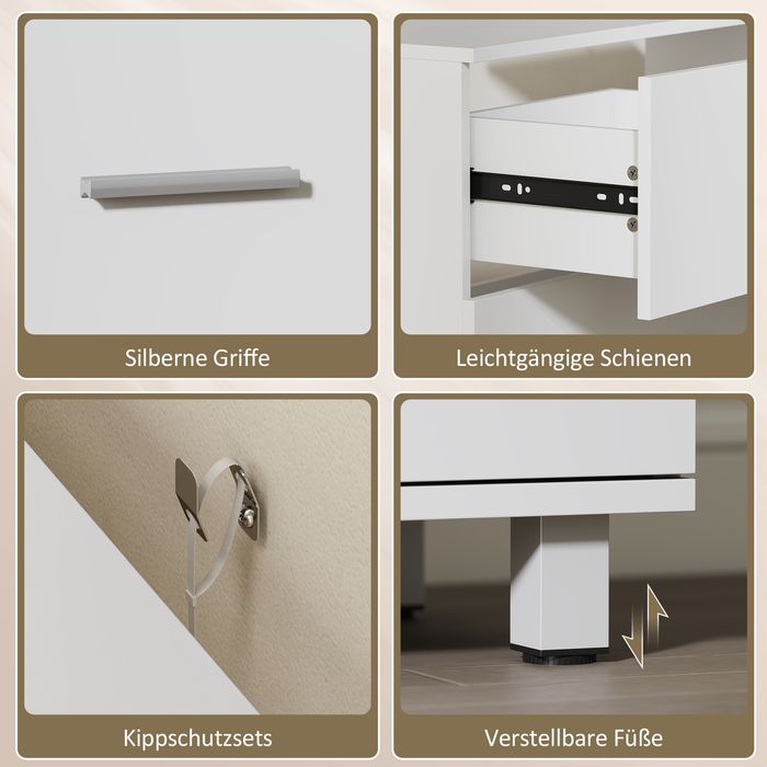 - Stabile MDF- und Spanplatten-Konstruktion bleibt dank Anti-Kipp-Sets standfest