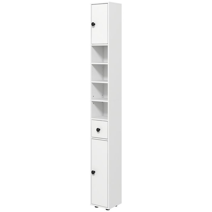 Badezimmerschrank, 4 Regale, Schublade, Spanplatte, schlankes Design, Weiss