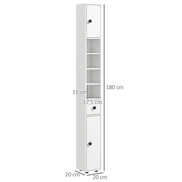 - Hoher und schlanker Schrank: Mit einer Grösse von 180 x 20 cm ist dieser Schrank perfekt für kleinere Badezimmer geeignet und bietet effizienten Stauraum.