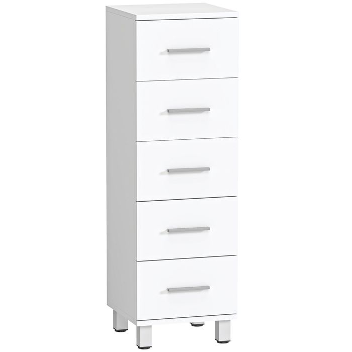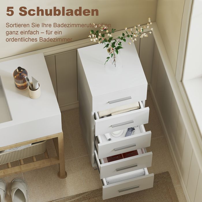 Badezimmerschrank, 5 Schubladen, 30x30x95cm, Weiss