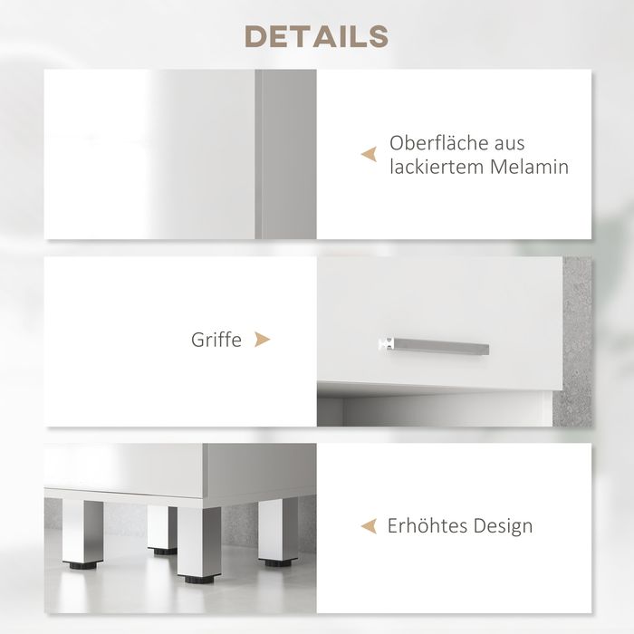 - Passen Sie Ihren Stil an: Die Türen dieses Schubladenschranks sind mit einer hochglänzenden Oberfläche versehen, die jedem Raum einen Hauch von Eleganz verleiht. Vielseitig einsetzbar, eignet sich der Schrank auch als Bücherregal im Wohnzimmer, Eckschrank in der Küche oder als praktische Lösung im Eingangsbereich oder Flur.