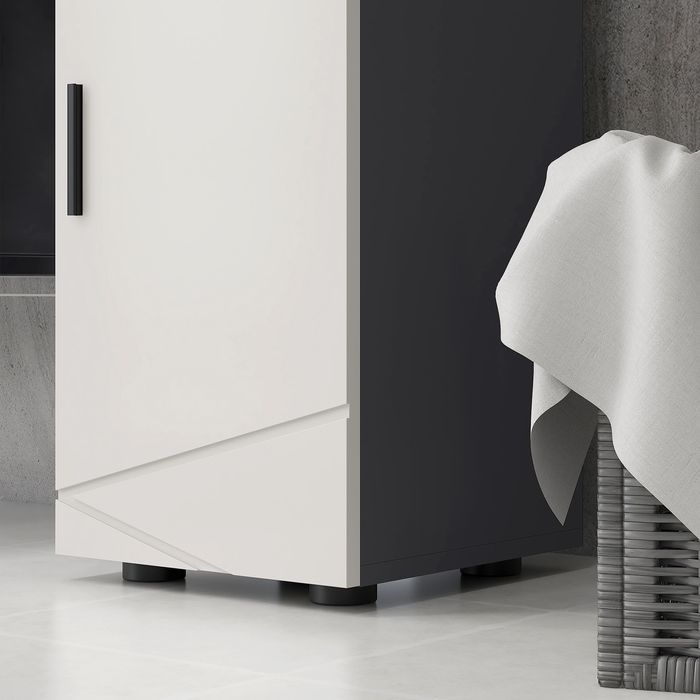 - Fett kontrastierendes Design: Dunkelgrauer Korpus mit hellgrauen Türen - die Linienprägung auf der Vorderseite sorgt für eine subtile Tiefe. Mit seinem simplen Design verleiht diese freistehende Badkommode Ihrem Raum Charakter.