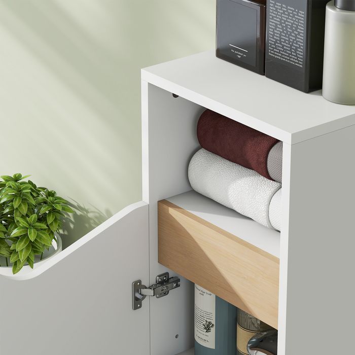 - Stilvolles Weiss und natürliche Holzoptik des Toilettenschranks ergänzen eine Vielzahl von Einrichtungsstilen