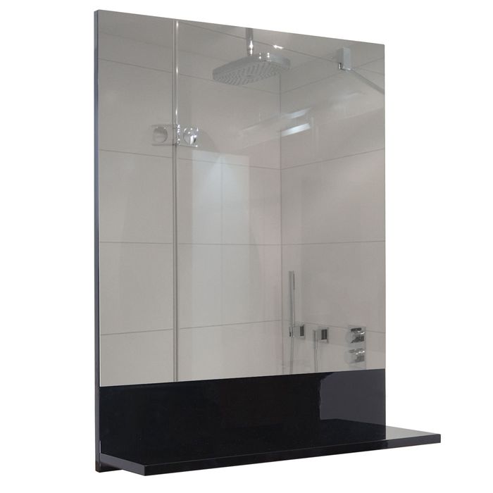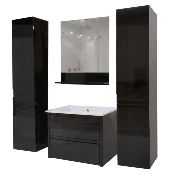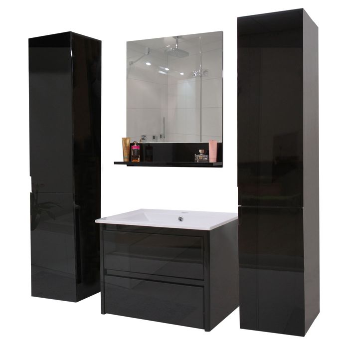 Badezimmerset HWC-B19, Waschtisch Wandspiegel 2x Hängeschrank, hochglanz - schwarz