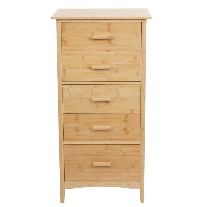 - Diese schicke Kommode aus hochwertigem Bambus passt perfekt in jedes Wohnzimmer oder Badezimmer. Mit insgesamt 5 Schubladen bietet dieser Schrank optimalen Stauraum für Ihre alltäglichen Gegenstände.