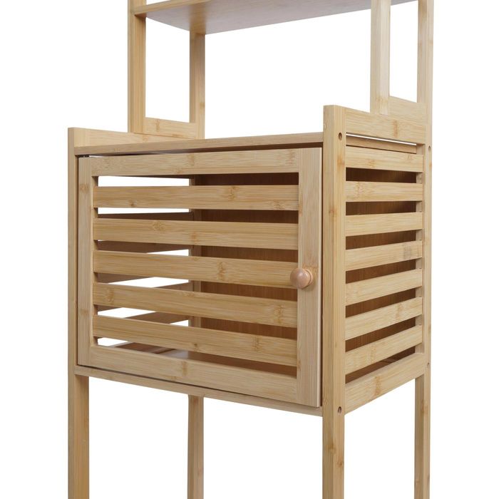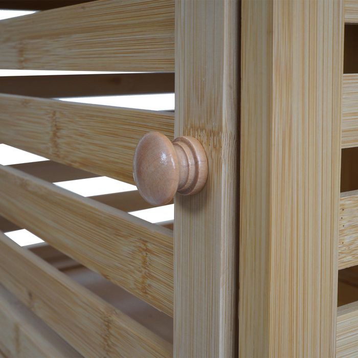 Gefertigt aus hochwertigem Bambus bringt der Badschrank nicht nur eine warme und natürliche Optik in Ihr Zuhause, sondern überzeugt auch durch seine Robustheit und Langlebigkeit. Bambus ist von Natur aus feuchtigkeitsresistent und daher perfekt für den Einsatz im Badezimmer geeignet, macht aber auch in Küche, Flur oder Wohnzimmer eine ausgezeichnete Figur. Trotz seiner Stabilität bleibt das Regal angenehm leicht und lässt sich problemlos transportieren oder umstellen, wenn Sie Ihre Einrichtung verändern möchten. Das zeitlose Design fügt sich harmonisch in nahezu jeden Wohnstil ein und macht den Badezimmerschrank zu einem vielseitigen Möbelstück, das sich flexibel Ihren Bedürfnissen anpasst. Ob als klassischer Badschrank, praktisches Küchenregal oder dekoratives Ordnungsregal - dieses Möbelstück wird Sie durch Funktionalität, hochwertige Verarbeitung und natürlichen Charme überzeugen.