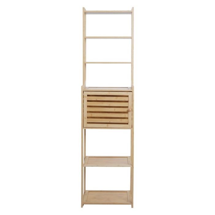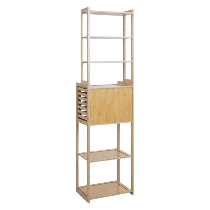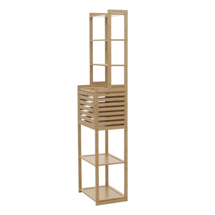 - Das Standregal aus hochwertigem Bambus bietet mit sechs Ablageflächen grosszügigen Stauraum für Handtücher, Pflegeprodukte und mehr. Die robuste, leichte Konstruktion schützt vor Feuchtigkeit und fügt sich harmonisch in jede Badezimmereinrichtung ein.