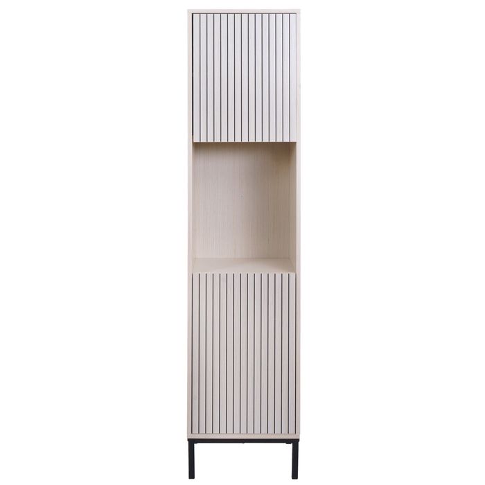 Hochschrank HWC-O42, Badschrank, MDF Melamin 174x39x30cm – Holzoptik beige