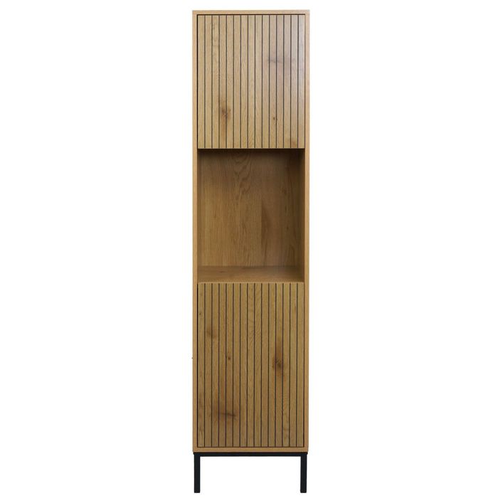 Hochschrank HWC-O42, Badschrank, MDF Melamin 174x39x30cm – Holzoptik natur