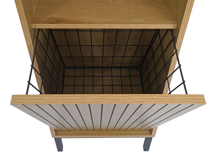 - Mit zwei geschlossenen Fächern, einem offenen Fach und einem Kippfach mit Wäschekorb schafft er grosszügigen Stauraum. Wandbefestigung, Fussbodenschoner und stabile Böden mit bis zu 10 kg Belastbarkeit sorgen für Sicherheit und Langlebigkeit.