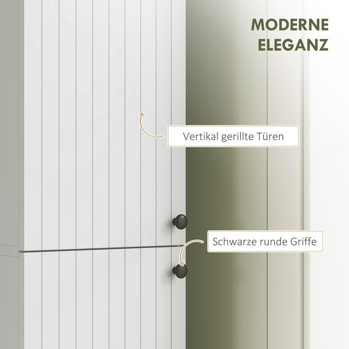 - ✔ Vertikal gerillte Türen in weisser Ausführung mit schwarzen Knöpfen für einen modernen Look