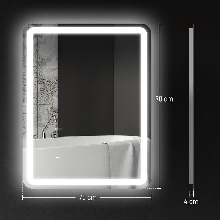 - Produktdaten: Gesamtgrösse: 70Lx4Bx90H cm. Der Badspiegel muss an das Stromnetz angeschlossen werden, um zu funktionieren. Eine Montage ist nicht erforderlich, Sie können ihn mit Schrauben und 4 Haken entweder vertikal oder horizontal an der Wand anbringen