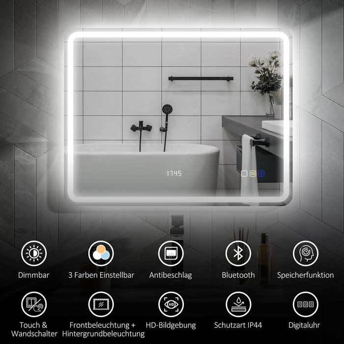 Optimieren Sie Ihre Morgenroutine mit dem intelligenten LED-Spiegel! Mit anpassbarer Helligkeit und drei Lichttemperaturen sorgt dieser Badezimmerspiegel stets für die richtige Stimmung. Das eingebaute Anti-Beschlags-Pad garantiert jederzeit klare Sicht und dank Bluetooth spielt der Spiegel Ihre Lieblingshits, während Sie sich vorbereiten. Mehr als ein Spiegel: Ein echtes Lifestyle-Upgrade.