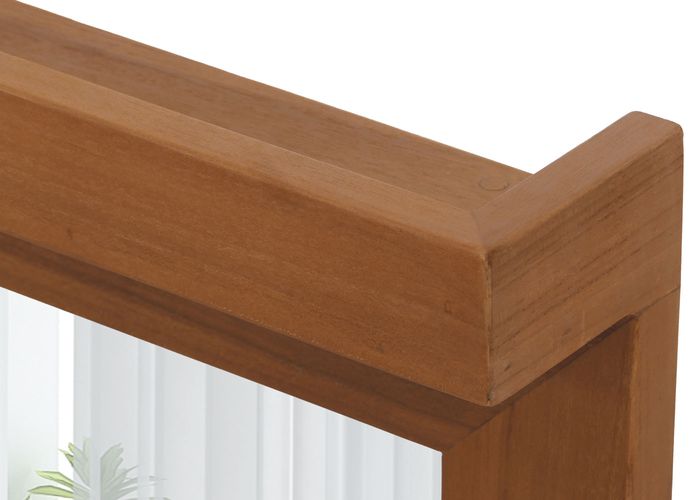 - Der Wandspiegel M87 aus B-Grade-Teakholz (20-30 Jahre, Tectona Grandis) überzeugt durch Langlebigkeit und natürlichen Charme. Ideal für Nassräume dank Teakölen, mit zwei Ablageflächen, komplett montiert und mit praktischer Aufhängevorrichtung.