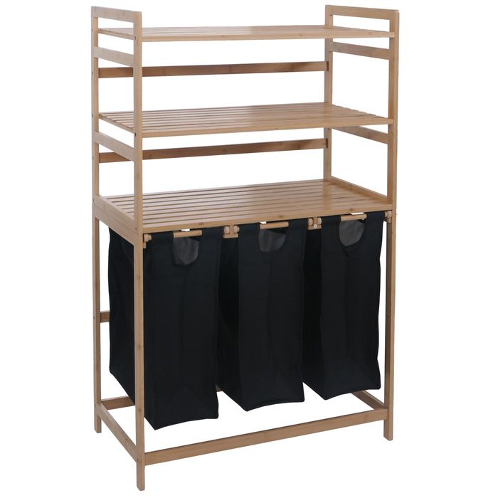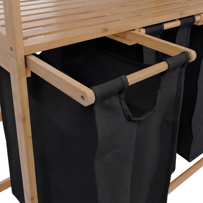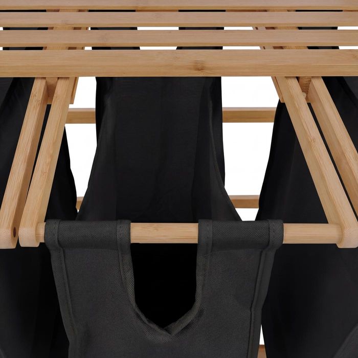 Bambus Wäschesammler P78, 3 Ablagen FSC® 125x80x40cm 135L, schwarz