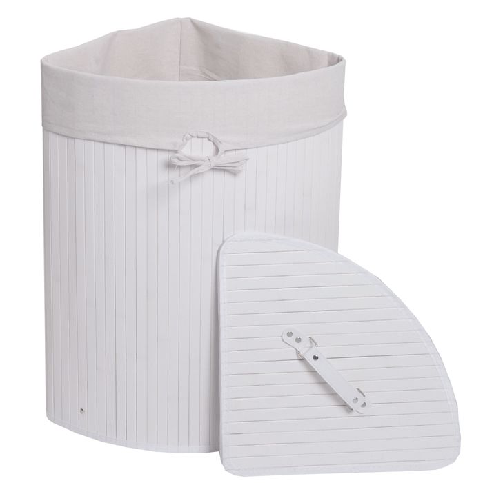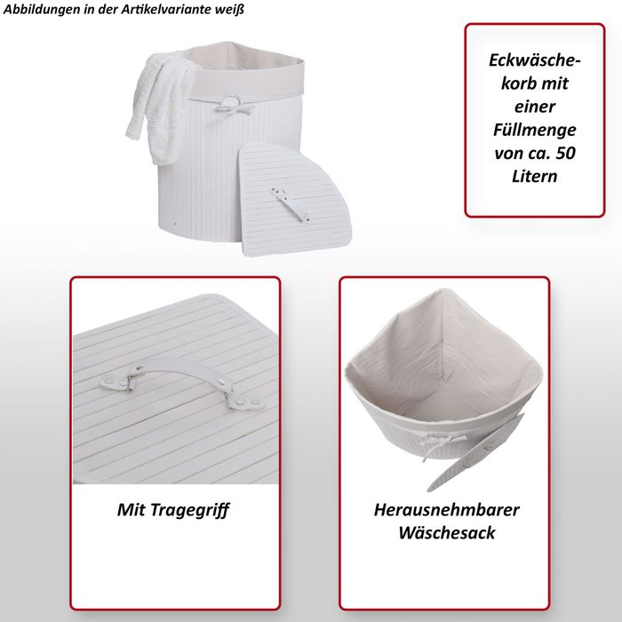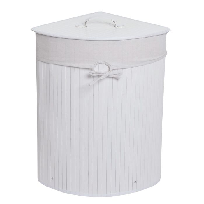 Eckwäschekorb HWC-C21, Bambus 61x48x35cm 50l – weiss