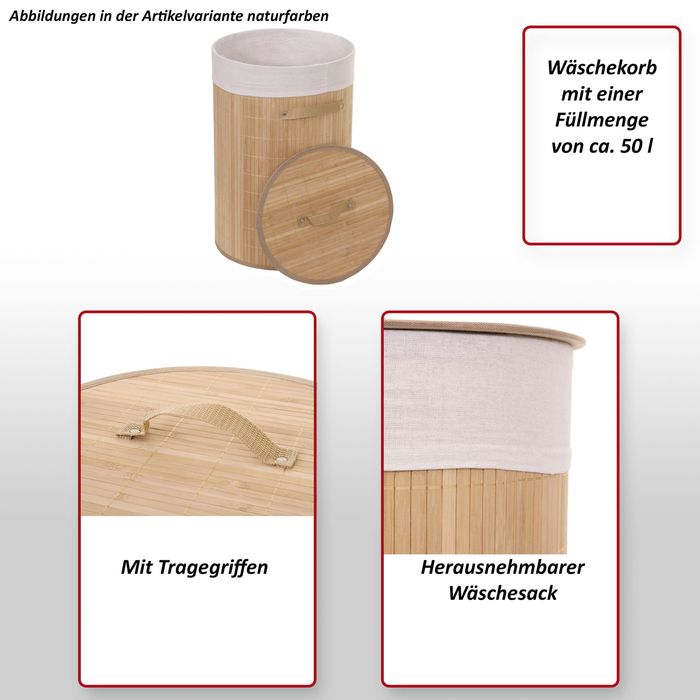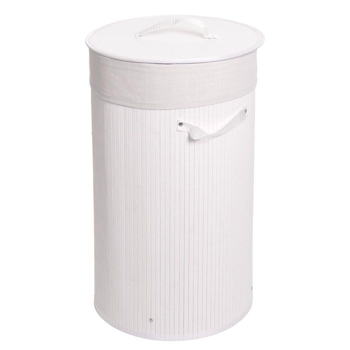 Wäschekorb HWC-C21, Bambus rund 59x35cm 50l – weiss