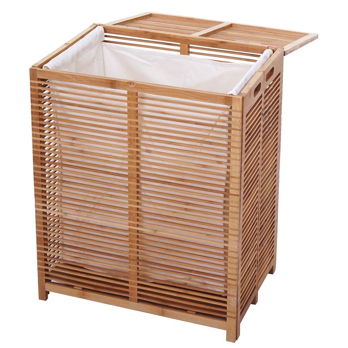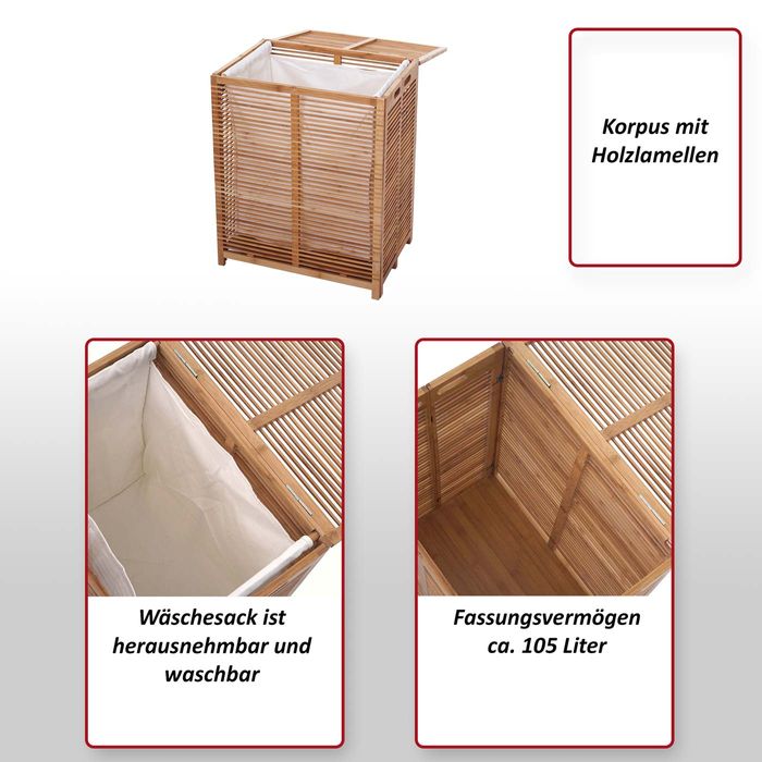 Wäschetruhe HWC-B18, Wäschebox Wäschekorb Wäschesammler, Bambus 61x50x35cm