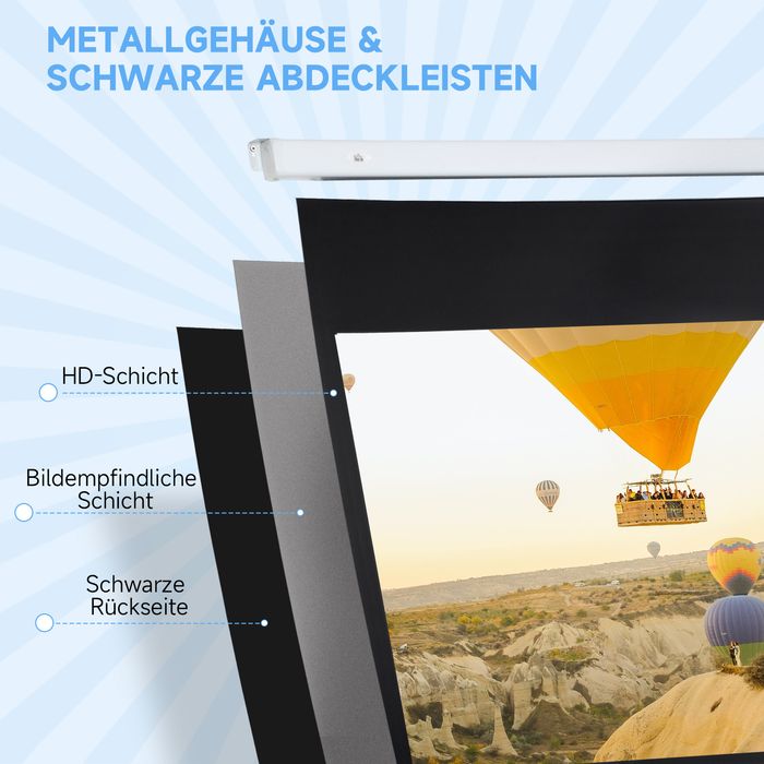 - ✔ Projektorleinwand 84" mit einem Seitenverhältnis von 16:9 und einem Betrachtungswinkel von 160°