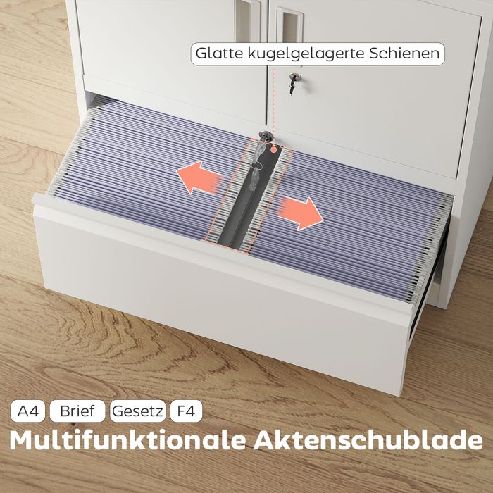 - Einfache Ablageorganisation: Die geräumige Schublade drs Aktenschranks verfügt über eine einstellbare Hängeleiste für A4-, Letter-, Legal- oder F4-Ordner, wodurch alle wichtigen Dokumente übersichtlich sortiert und schnell zur Hand sind. Dank der sanften Kugellagerführungen lässt sie sich mühelos öffnen und schliessen.