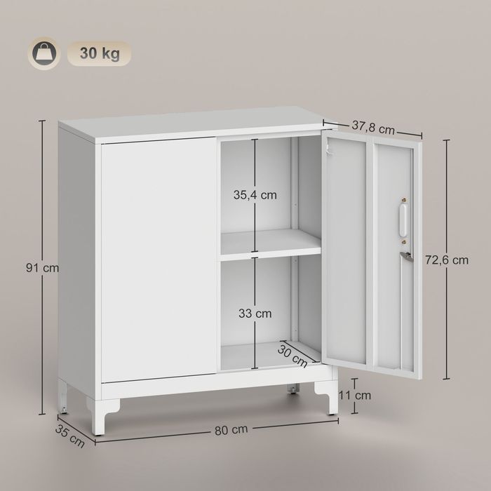 Büroschrank aus Metall, verschliessbare Türen, Bürokommode, 2-stufiges Design, Weiss
