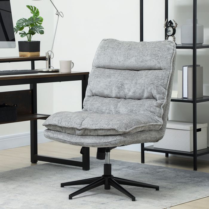 Armloser Polsterstuhl, drehbarer gepolsterter Bürostuhl mit weichem Stoffbezug, höhenverstellbar, Stahlbeine, Grau
