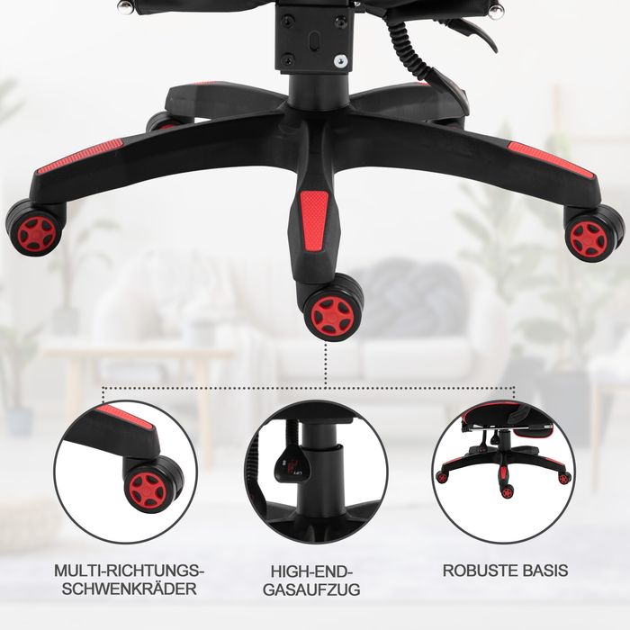 Bürostuhl, ergonomisch Gamingstuhl Massagefunktion, Kunstleder schwarz+Rot