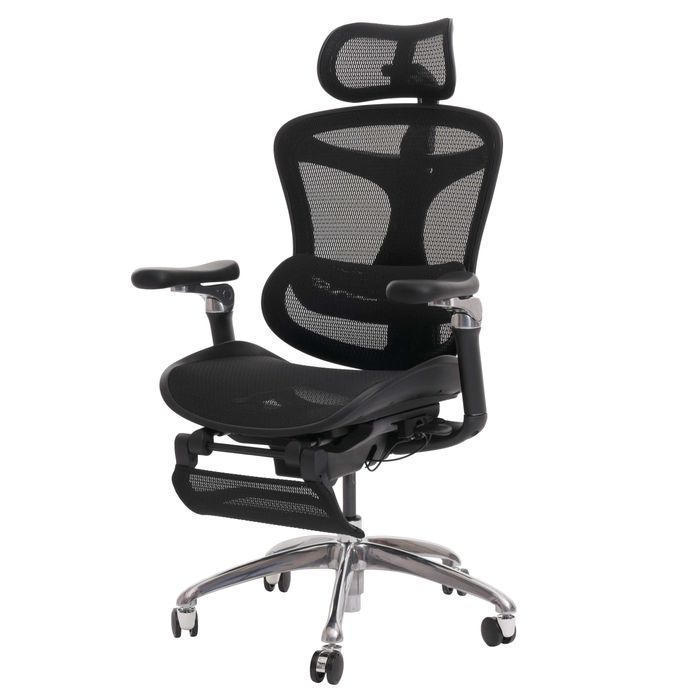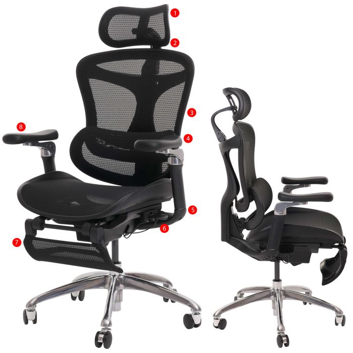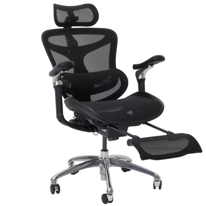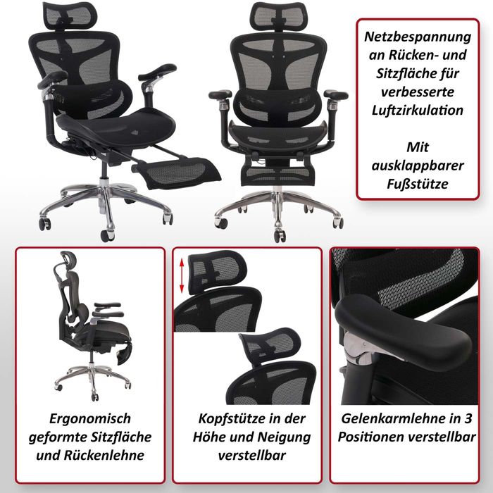 Der Bürostuhl vereint Komfort und Funktionalität und ist ideal für den Arbeitsplatz. Die Netzbespannung an Rücken- und Sitzfläche sorgt für optimale Luftzirkulation und ein angenehmes Sitzklima, auch an langen Arbeitstagen. Die ausklappbare Fussstütze ermöglicht entspannte Pausen, während die S-förmige Lendenwirbelstütze die natürliche Körperhaltung unterstützt und Rückenbeschwerden vorbeugt. Ergonomisch geformte Sitzfläche und Rückenlehne bieten optimalen Halt und Komfort, während die in vier Stufen höhenverstellbare Rückenlehne und die stufenlos höhenverstellbare Gasdruckfeder eine individuelle Anpassung des Stuhls an Ihre Körpergrösse und Sitzhöhe ermöglichen.